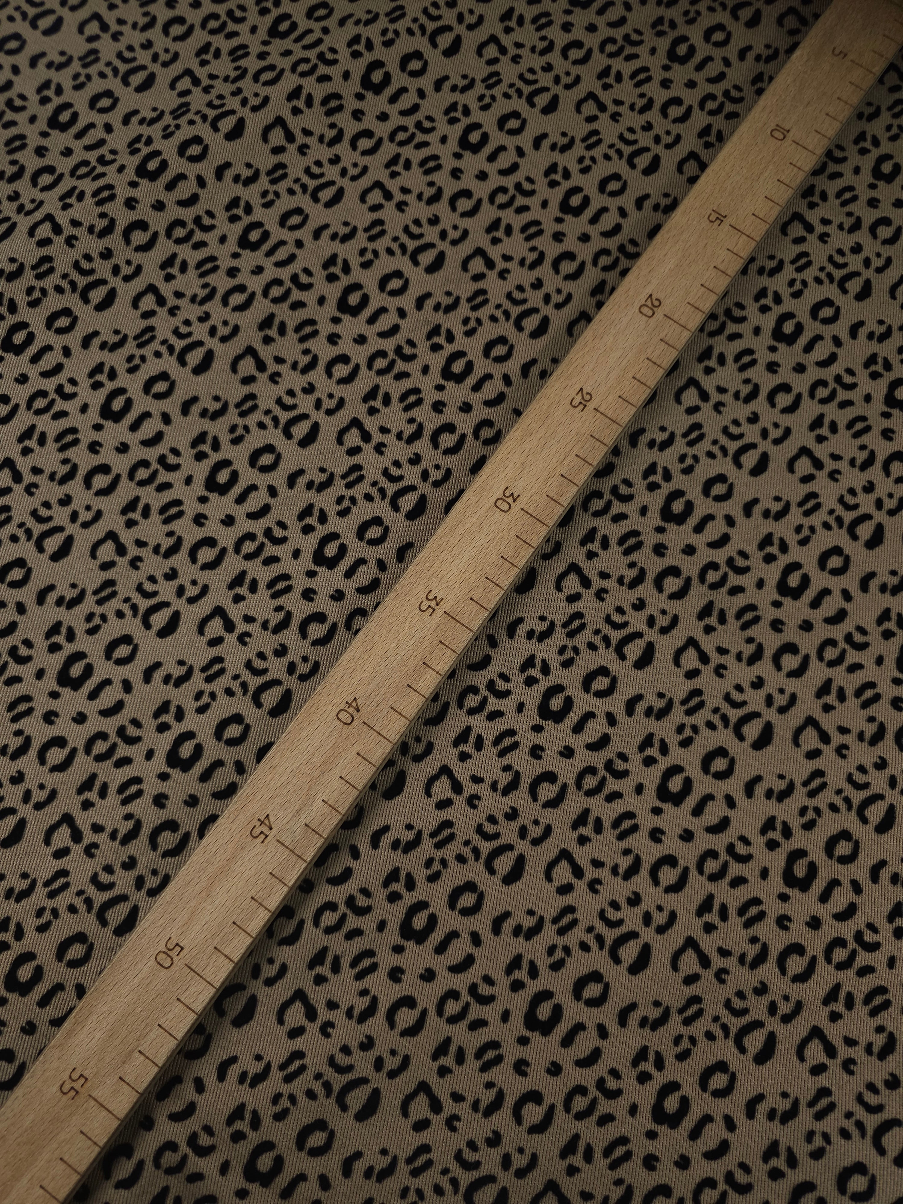 • Tan Beige Ditsy Leopard Velvet Burnout Denim