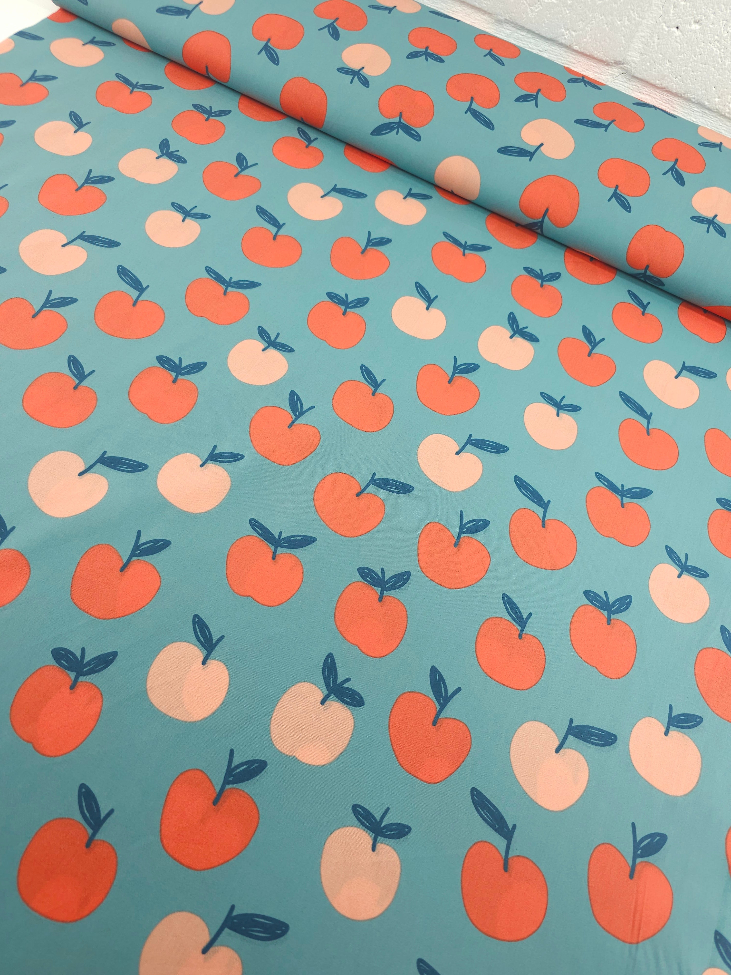 • Aqua Blue Floating Apples 100% Cotton 60"