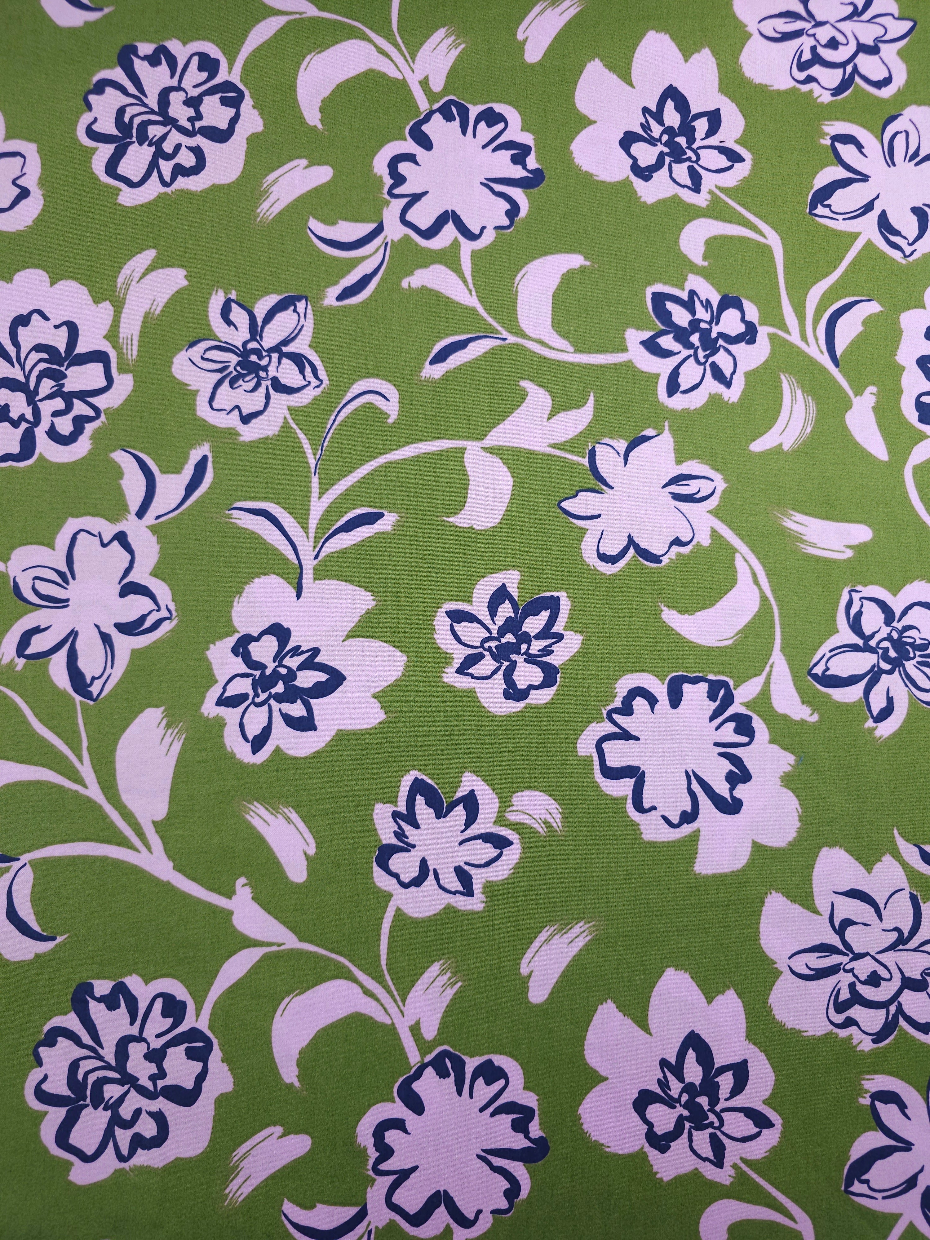 Green/Lilac Bordeaux Floral Cotton Sateen 57"