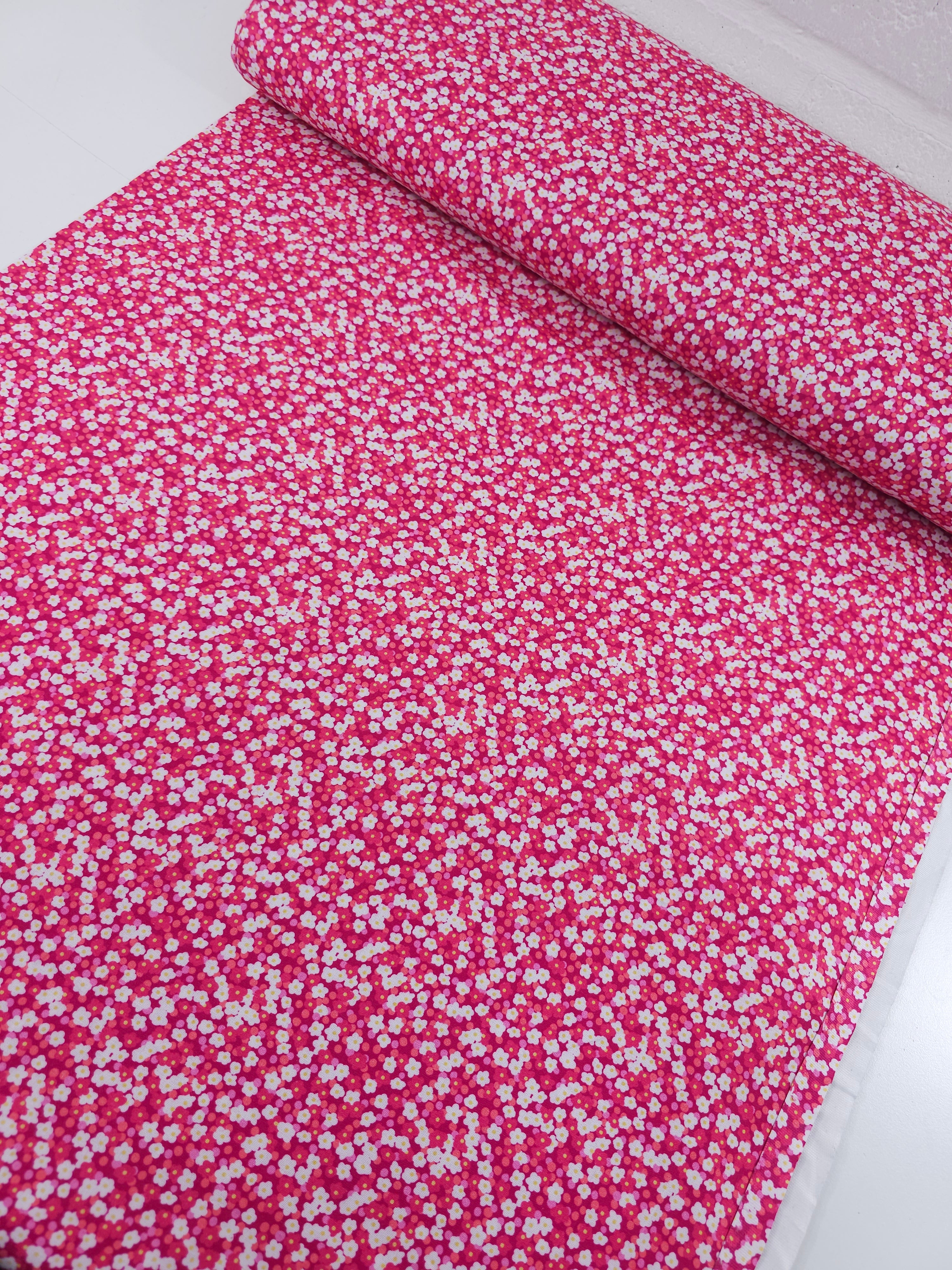 • Pink Ditsy Puff Daisy Floral 100% Cotton