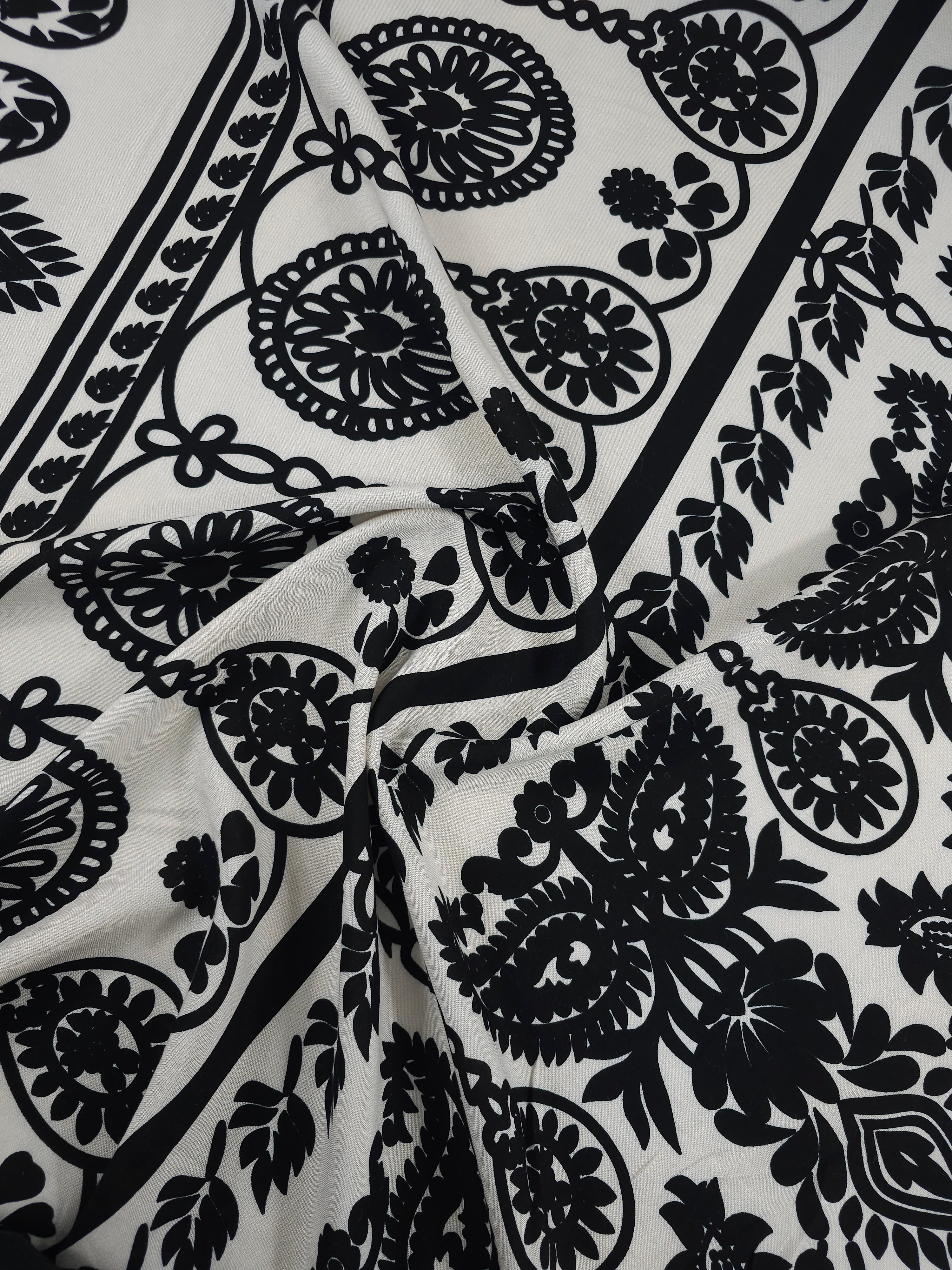 Beige/Black Masquerade Damask Viscose Challis