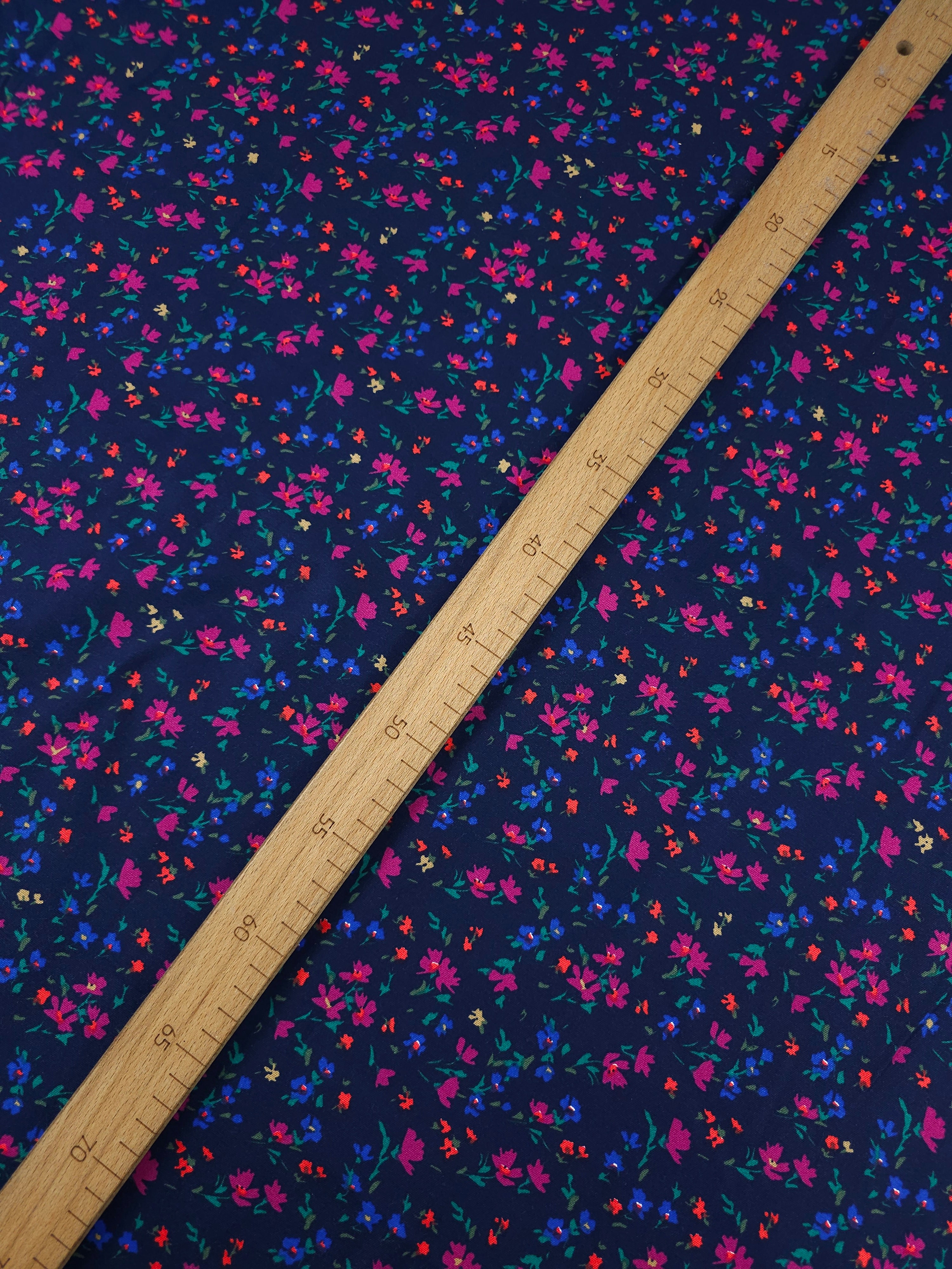 Navy Wildflower Lightweight Cotton Sateen Twill