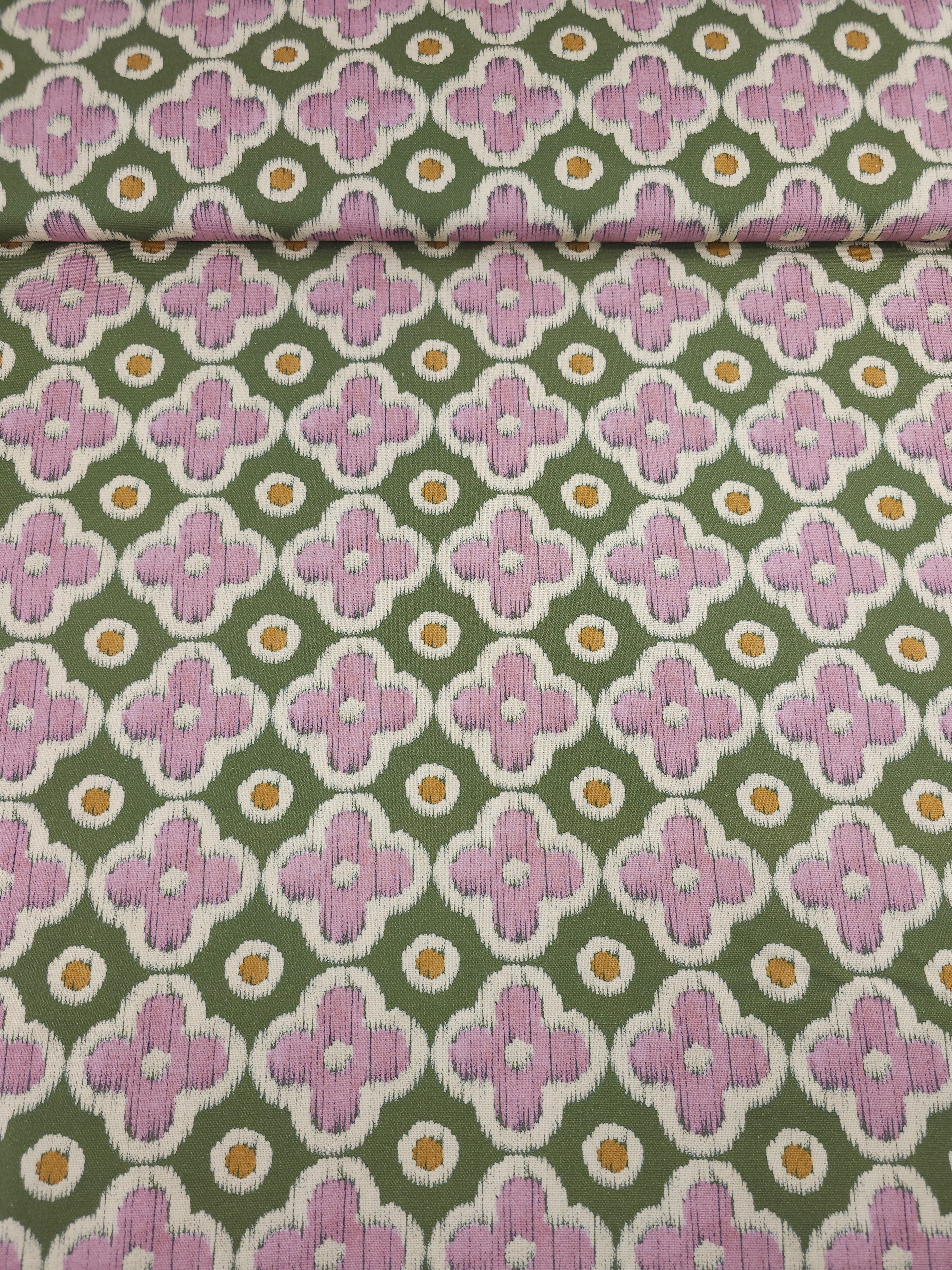 Olive/Pink Bordeaux Tile Lightweight Canvas Cotton