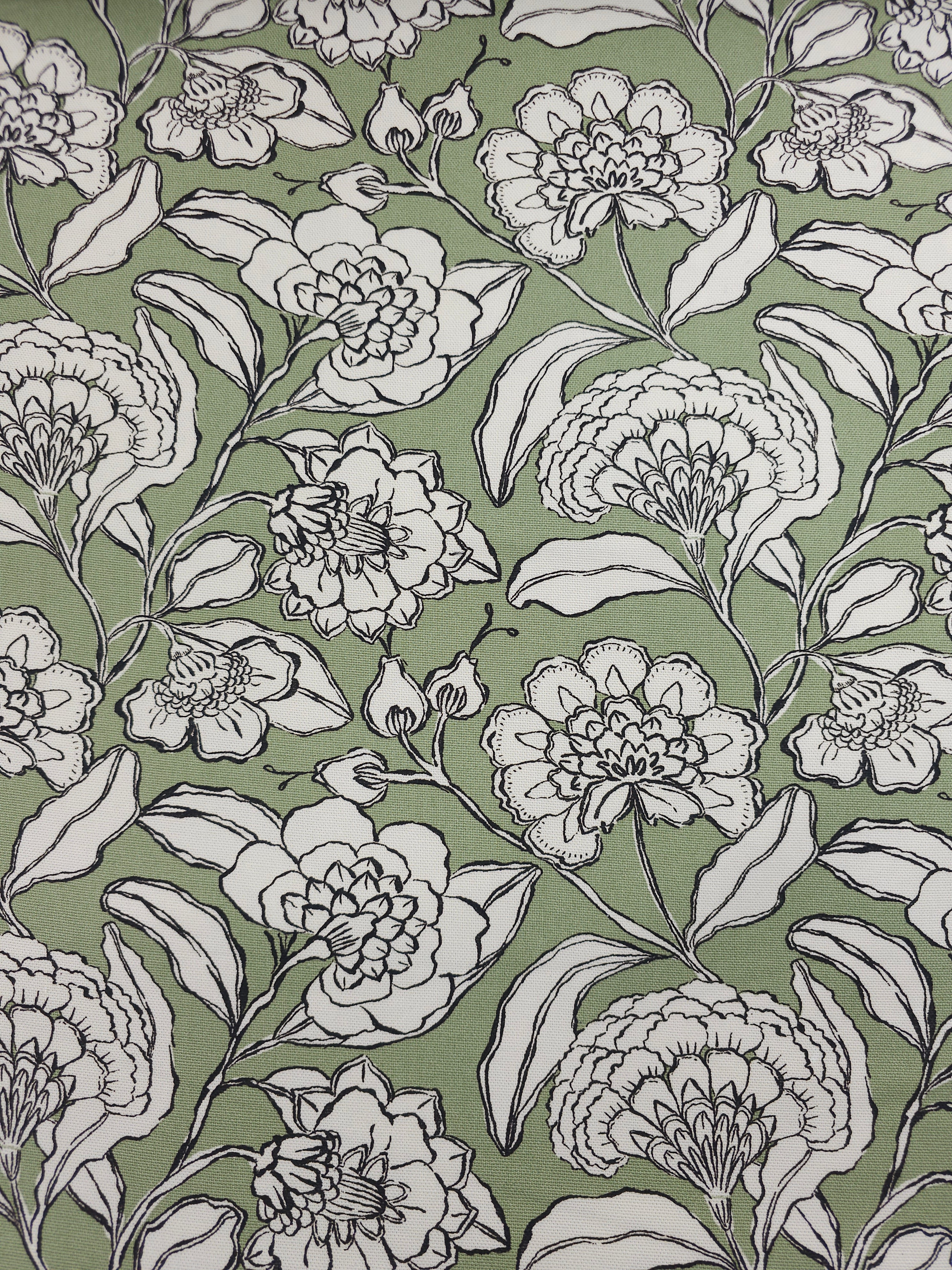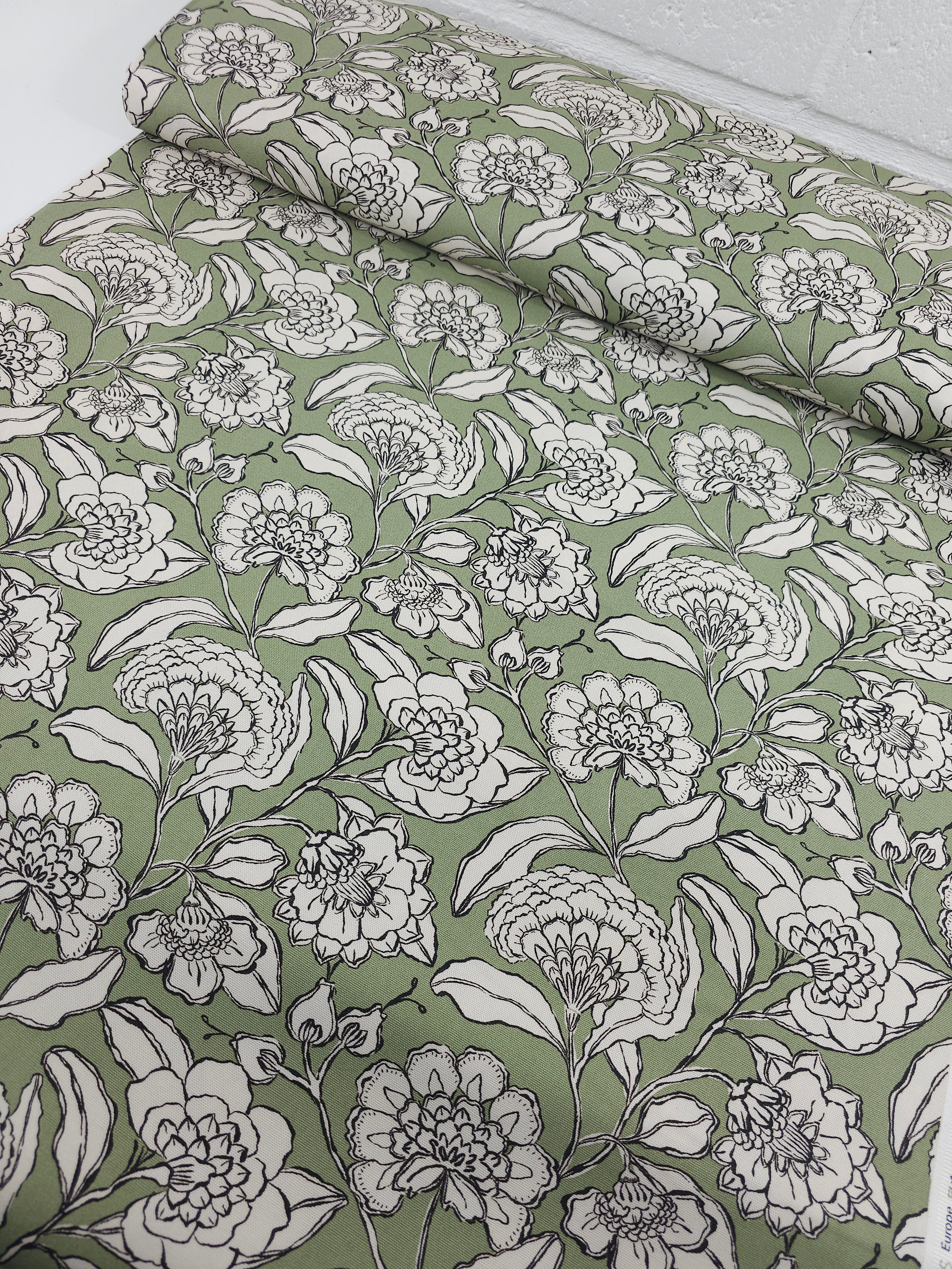 • Sage Green Sketch Floral Lightweight Canvas Cotton