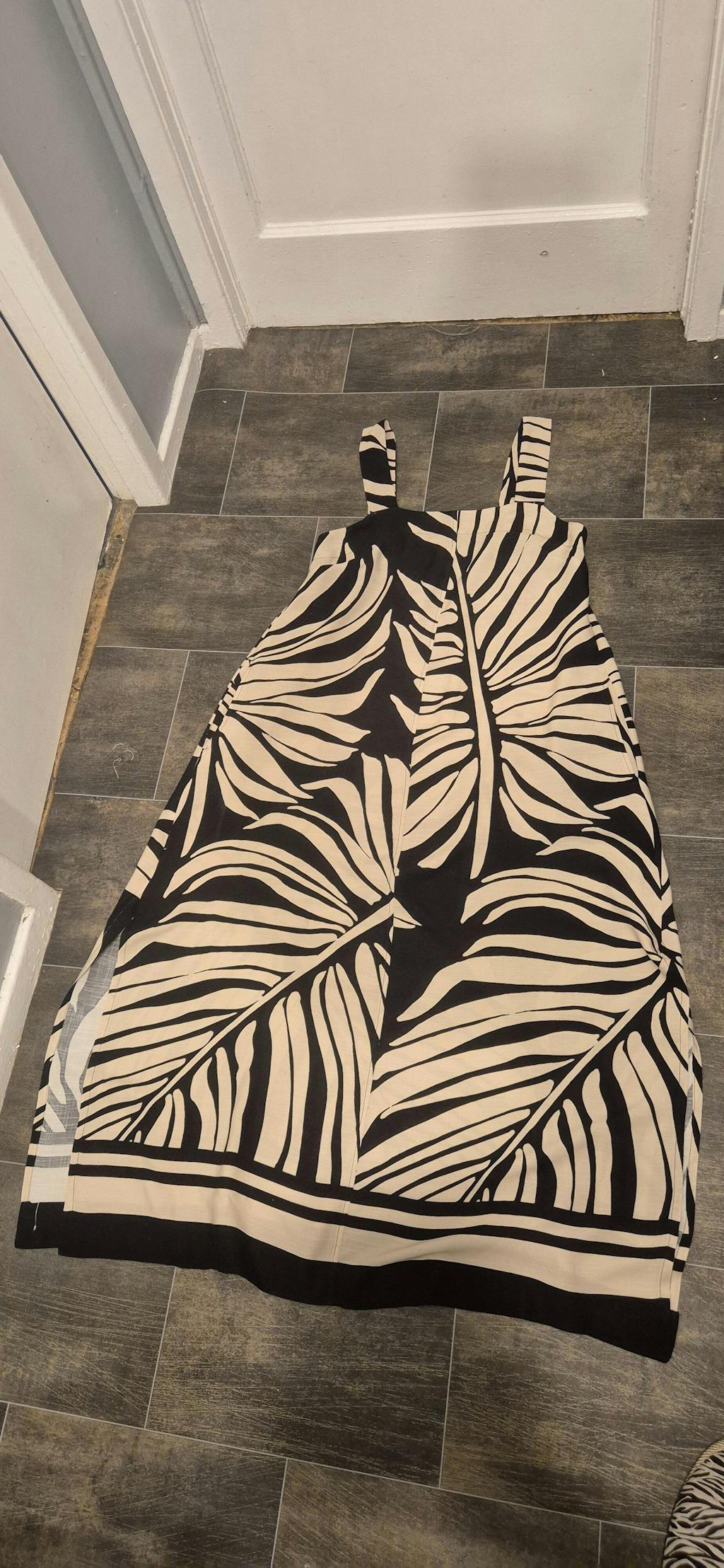 Black/Beige Large Palm Leaf Slub Look Viscose