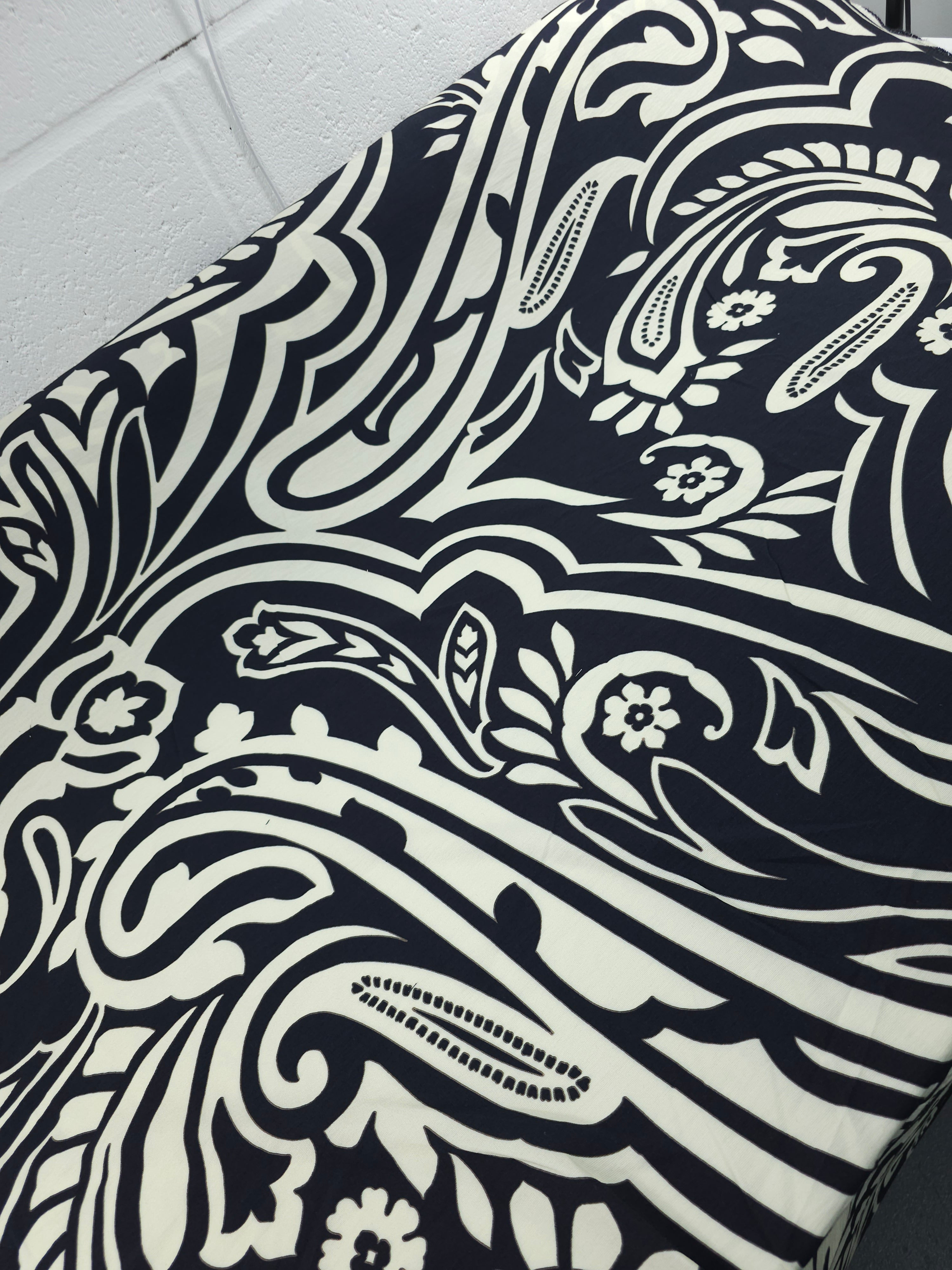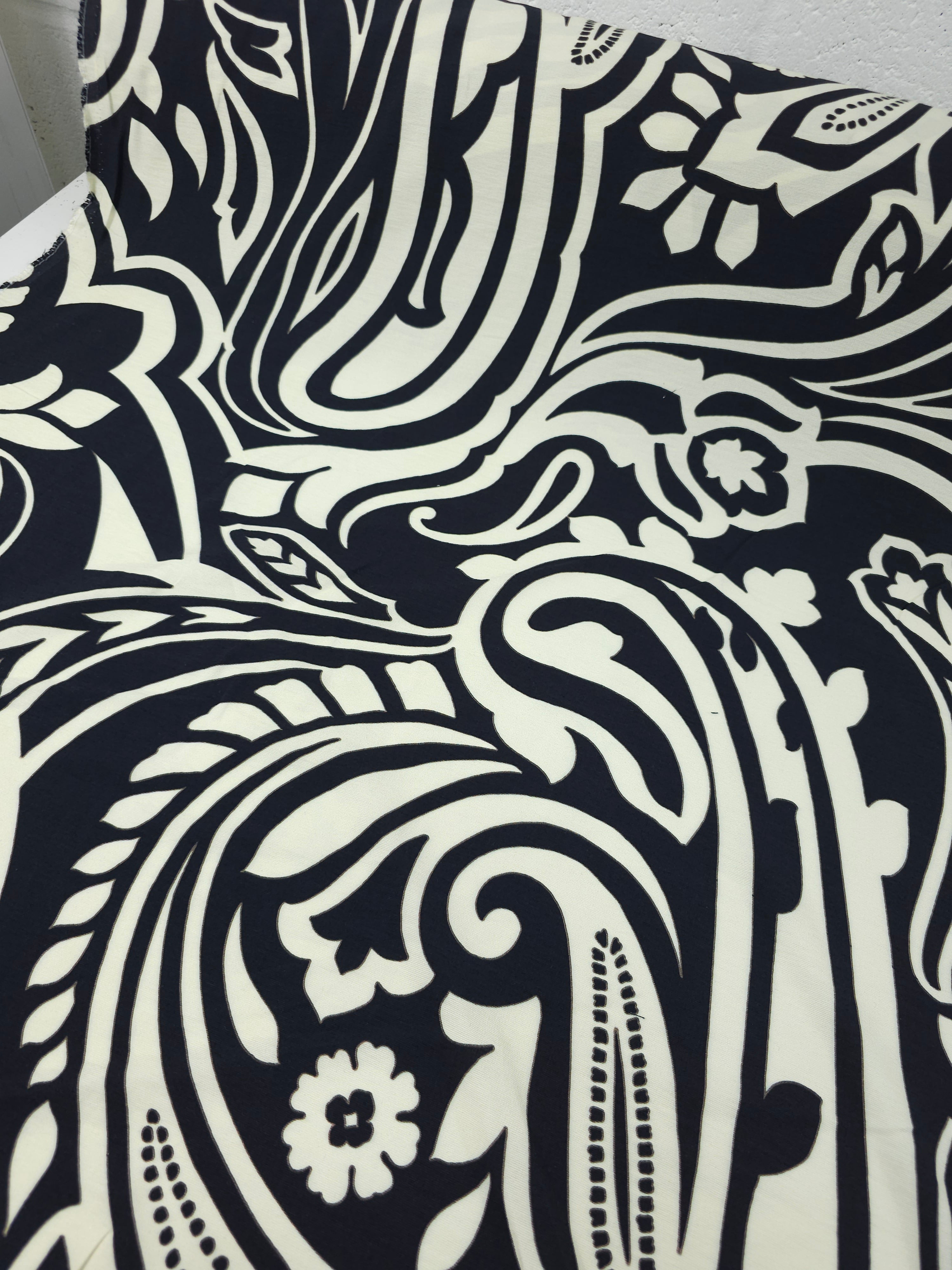 Cream/Black Large Paisley Floral Cotton Modal