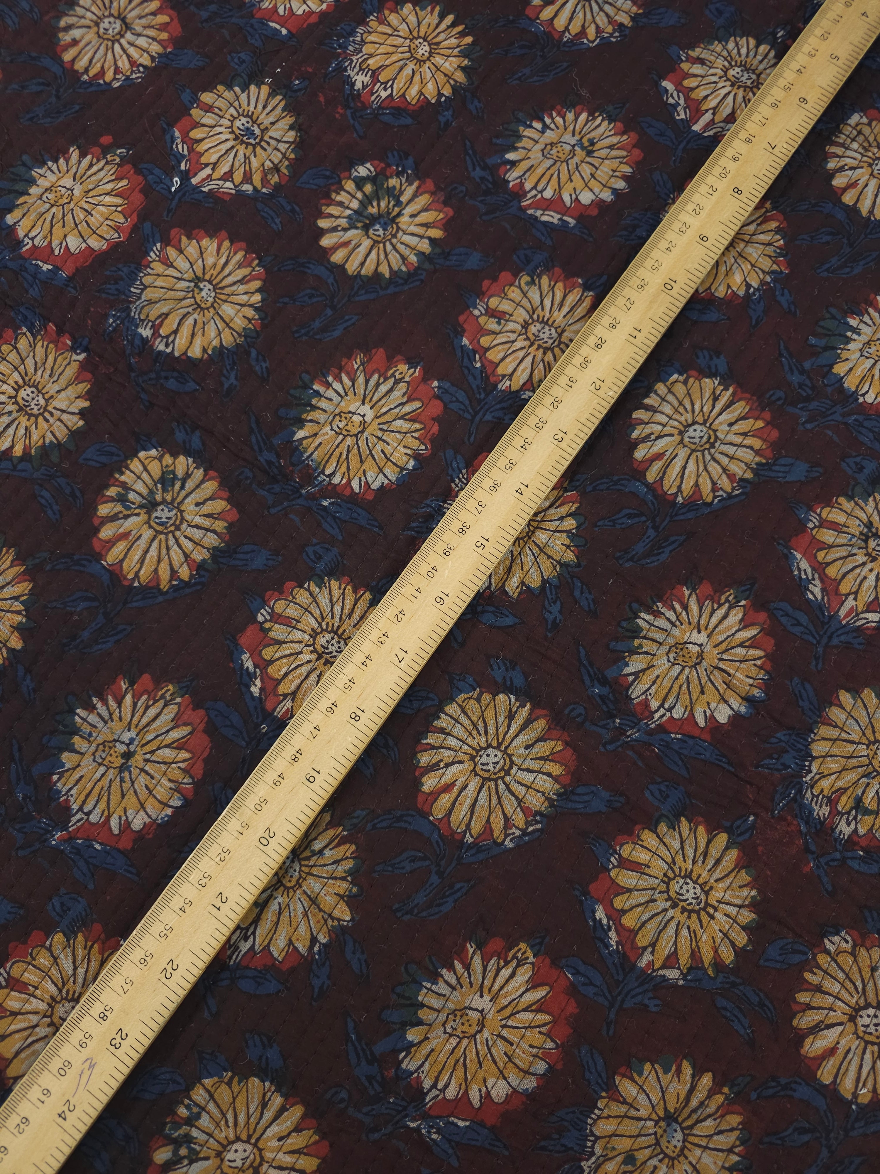 Deep Burgundy/Blue Ruffle Floral Quilted Block Print