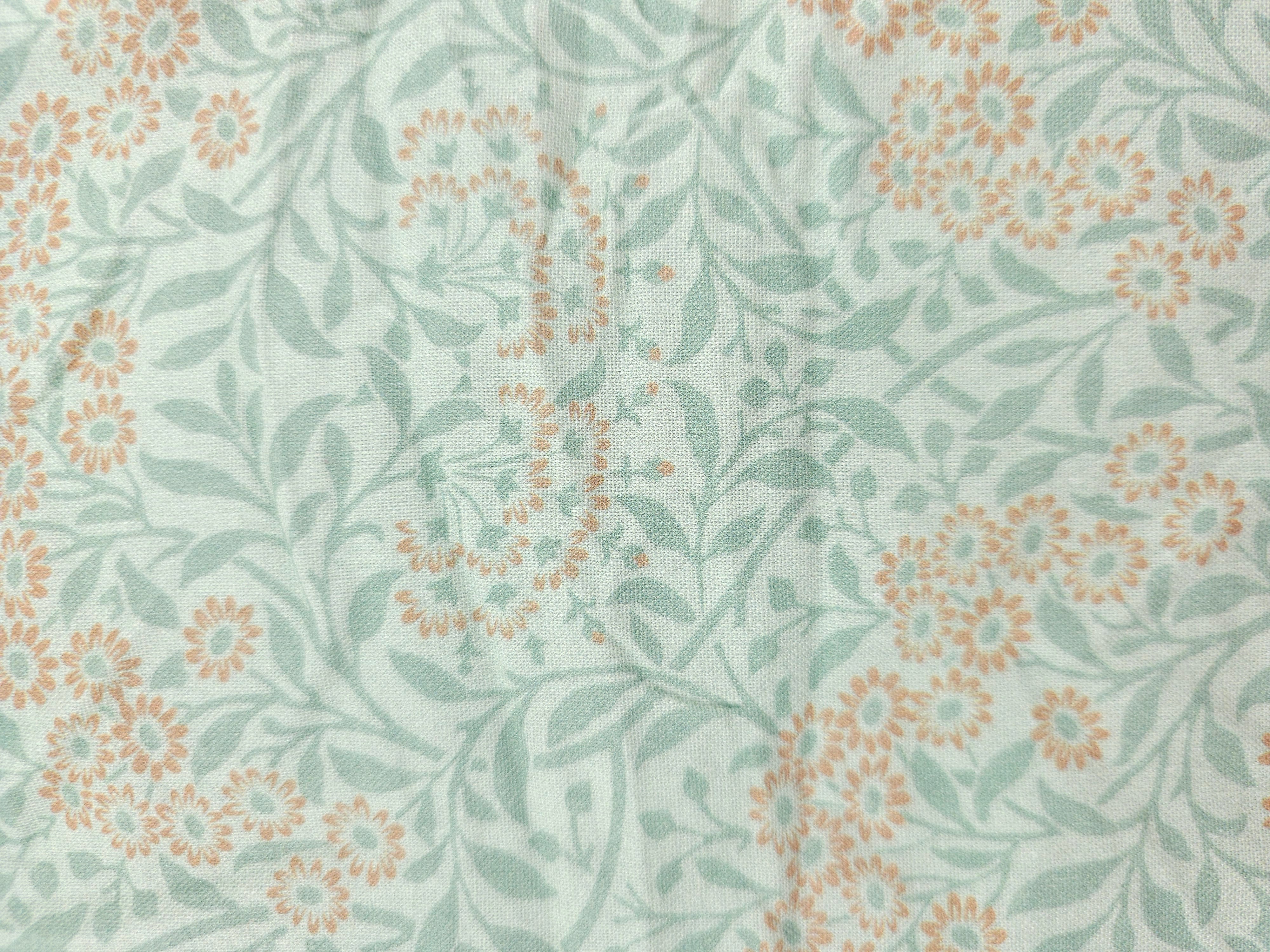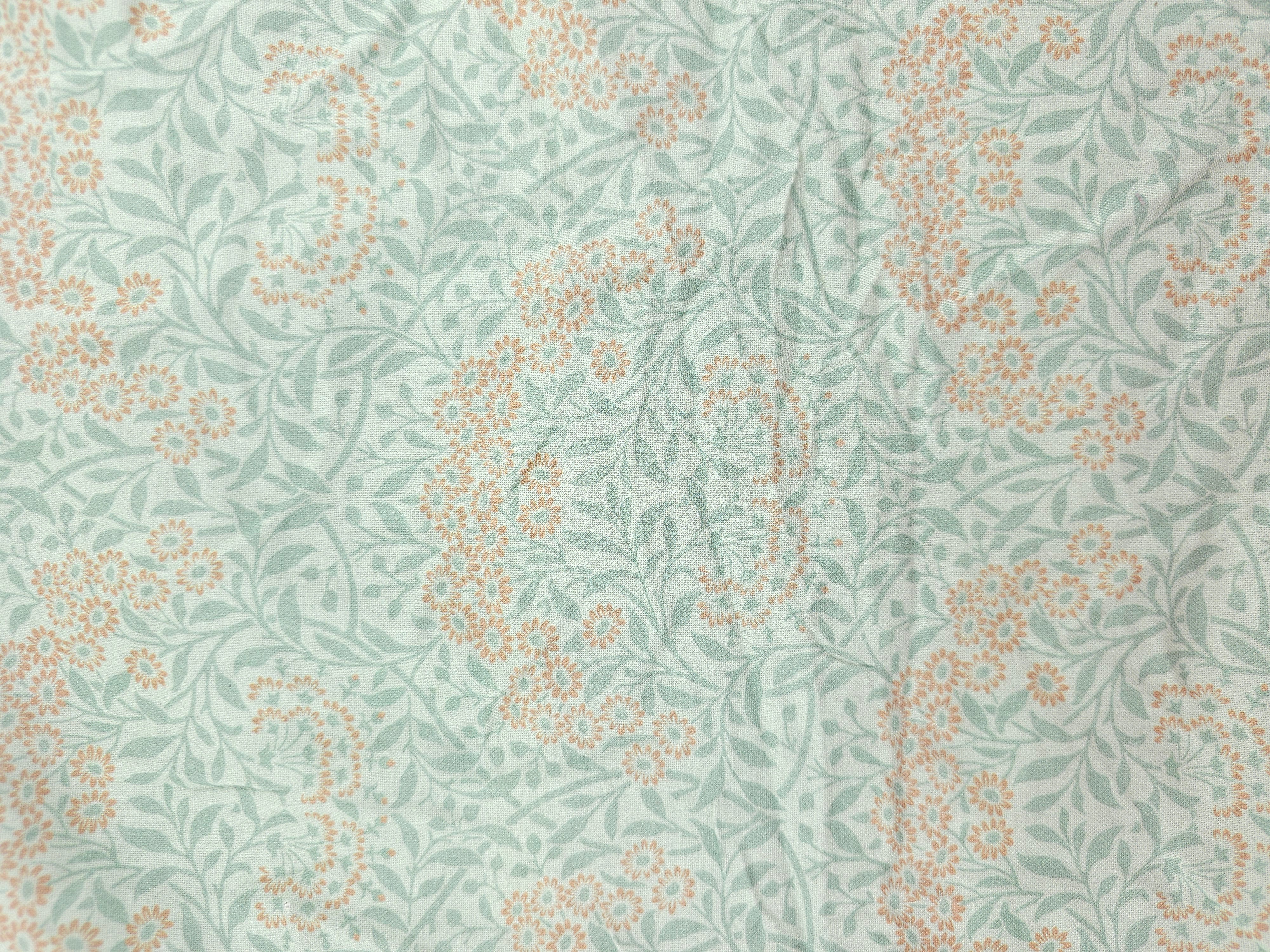 Duck Egg/Peach Leaf Floral 100% Cotton - 2.60m Piece