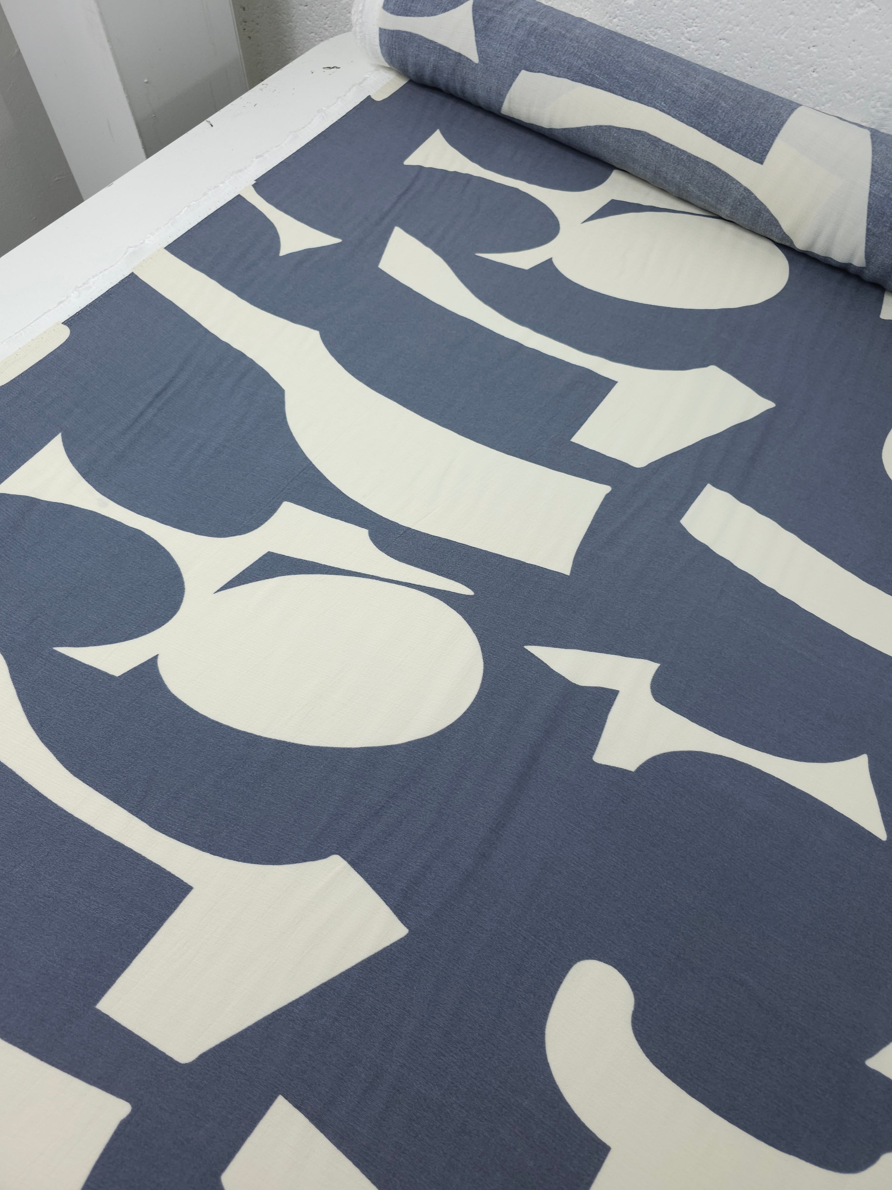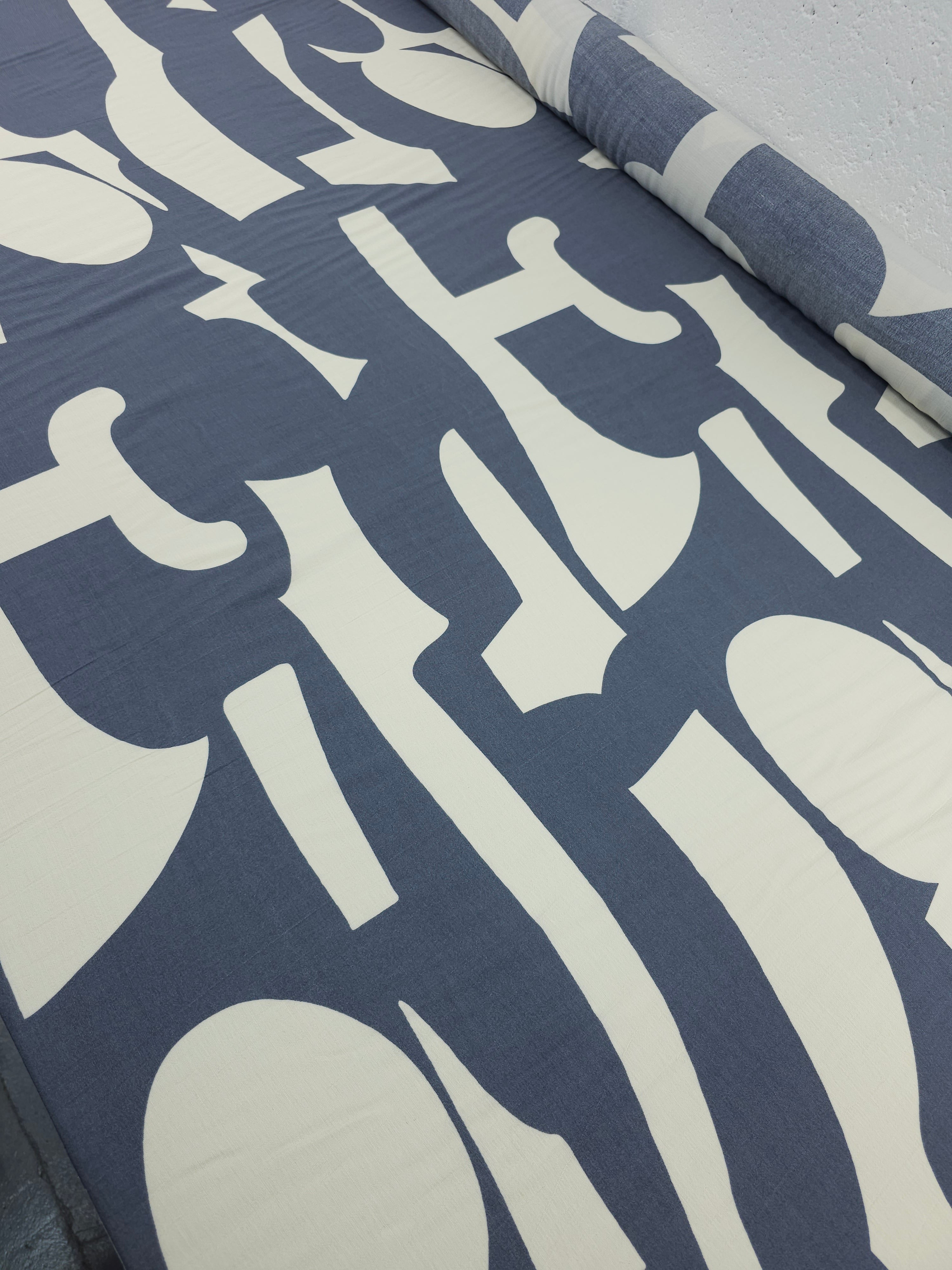 Grey/Ivory Cream Abstract Shapes Viscose Crepe