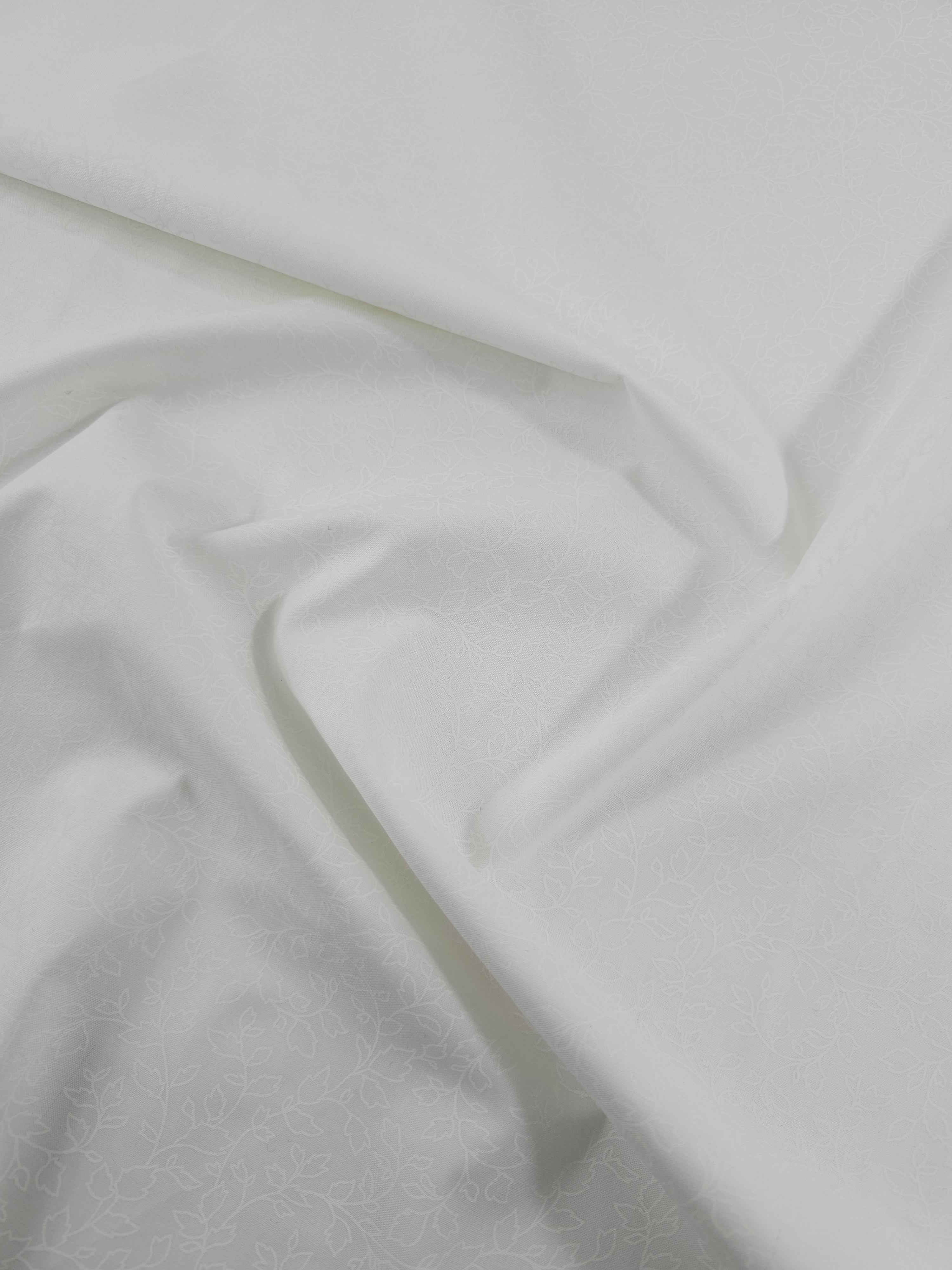 Leaf Twine Outline White On White Tonal 100% Cotton