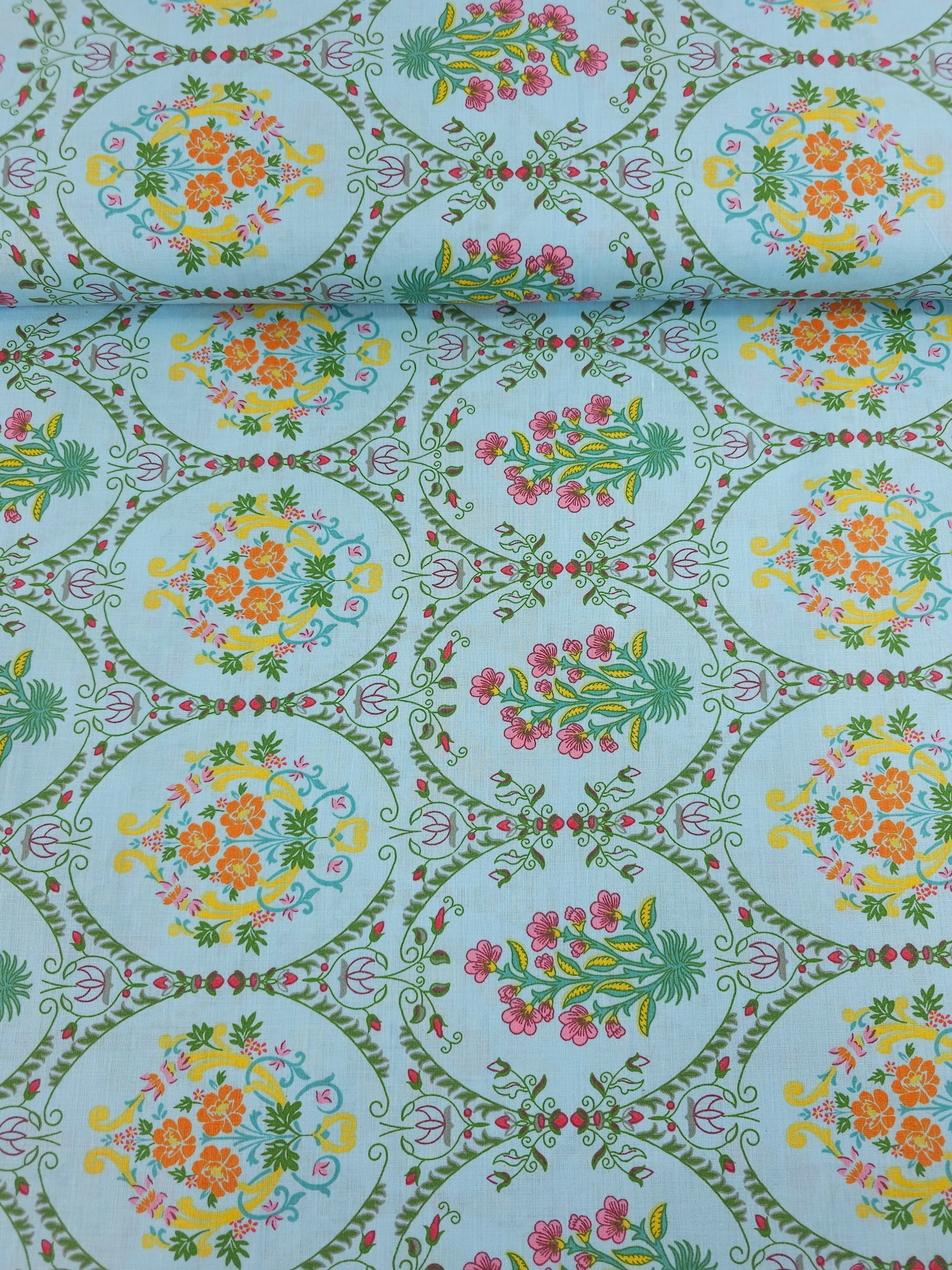 Light Blue Vintage Floral Opulence 100% Cotton 102" *EXTRA WIDE*