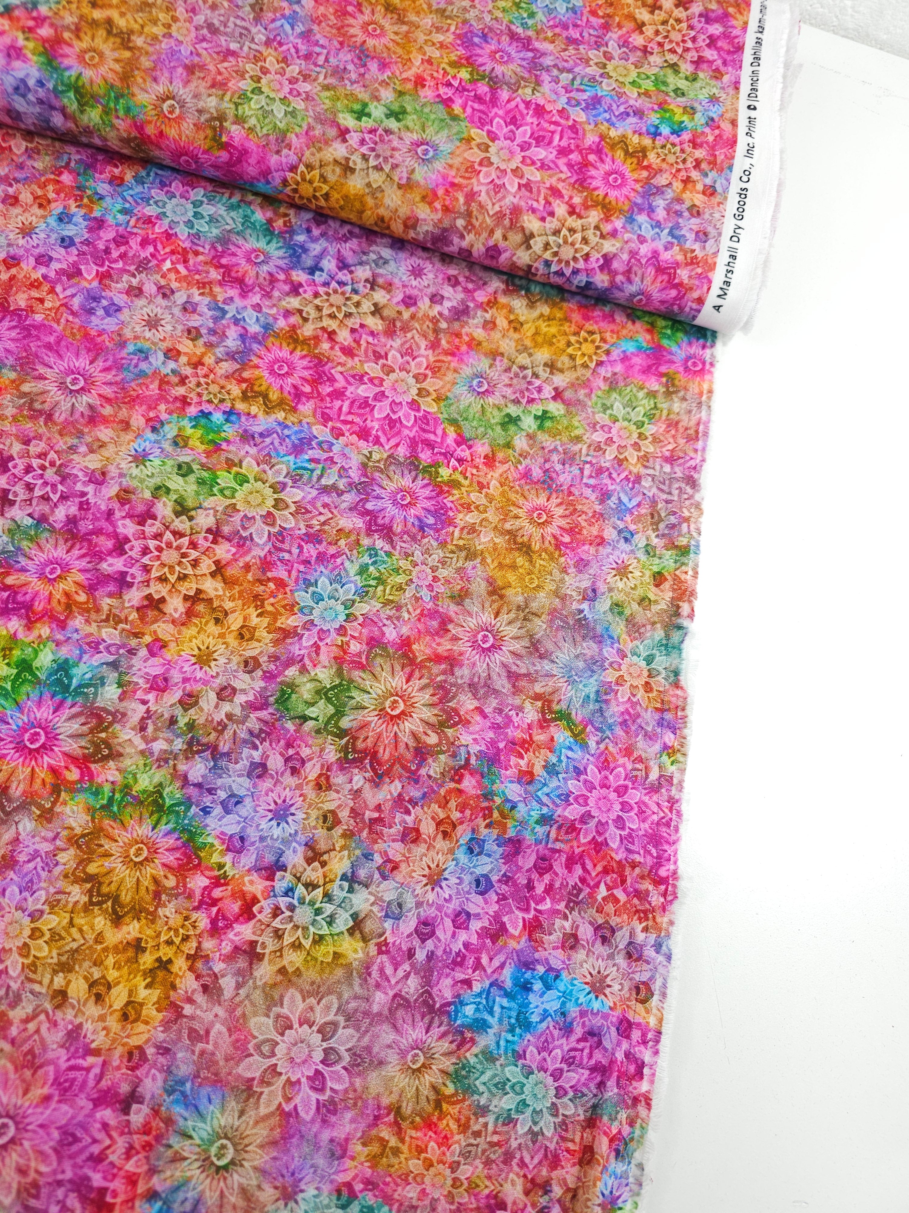 Light Multicolour Dancing Dahlias Kaleidoscope 100% Cotton