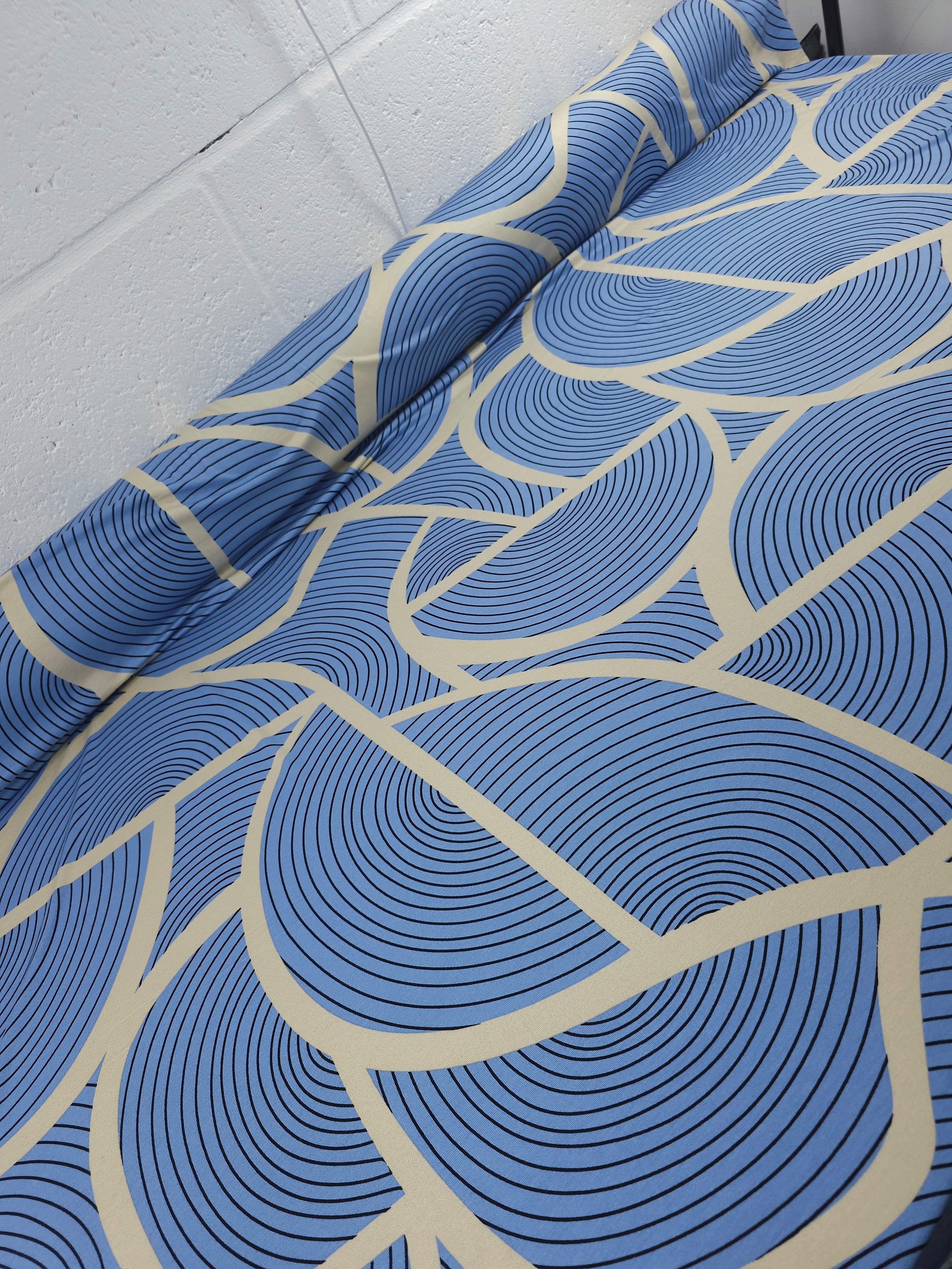 Powder Blue/Cream Abstract Striped Curve Viscose Jersey