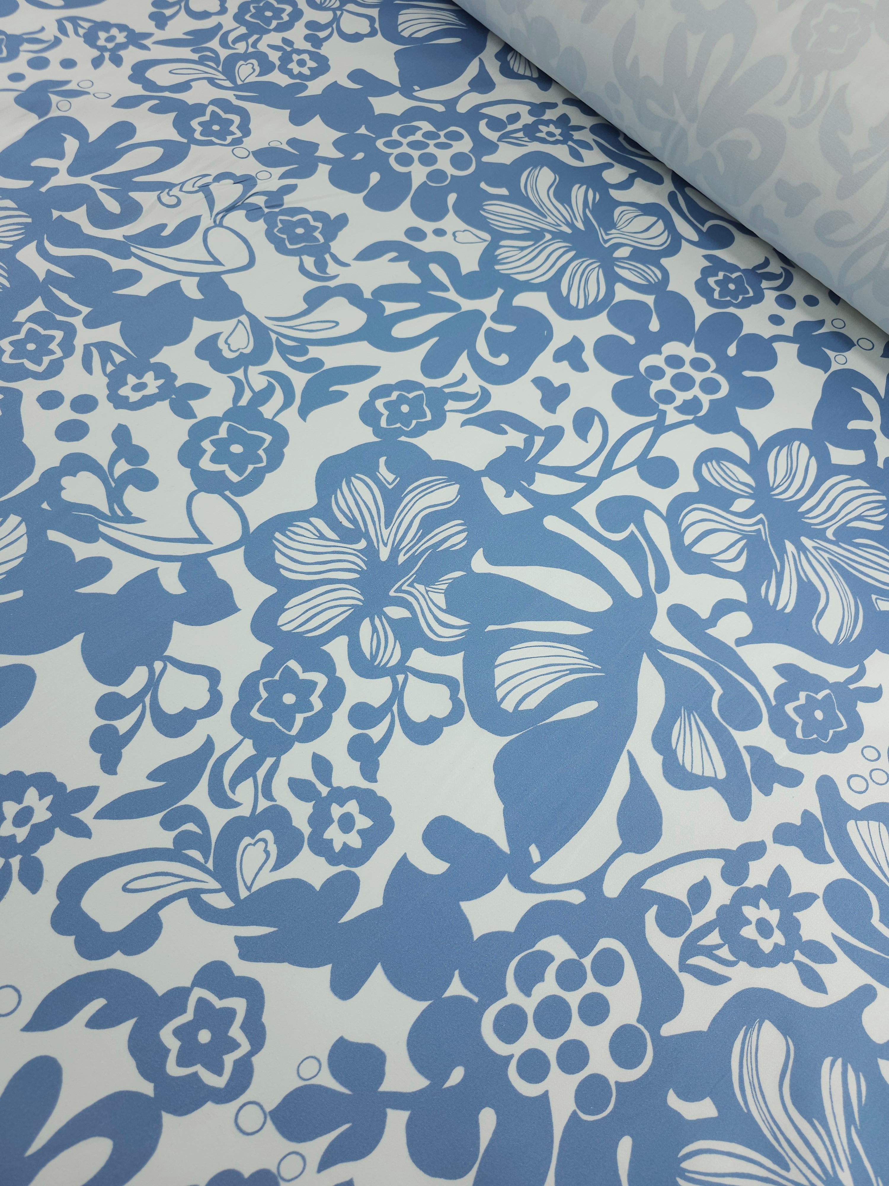 Powder Blue Wonder Floral Mediumweight Cotton Sateen Stretch